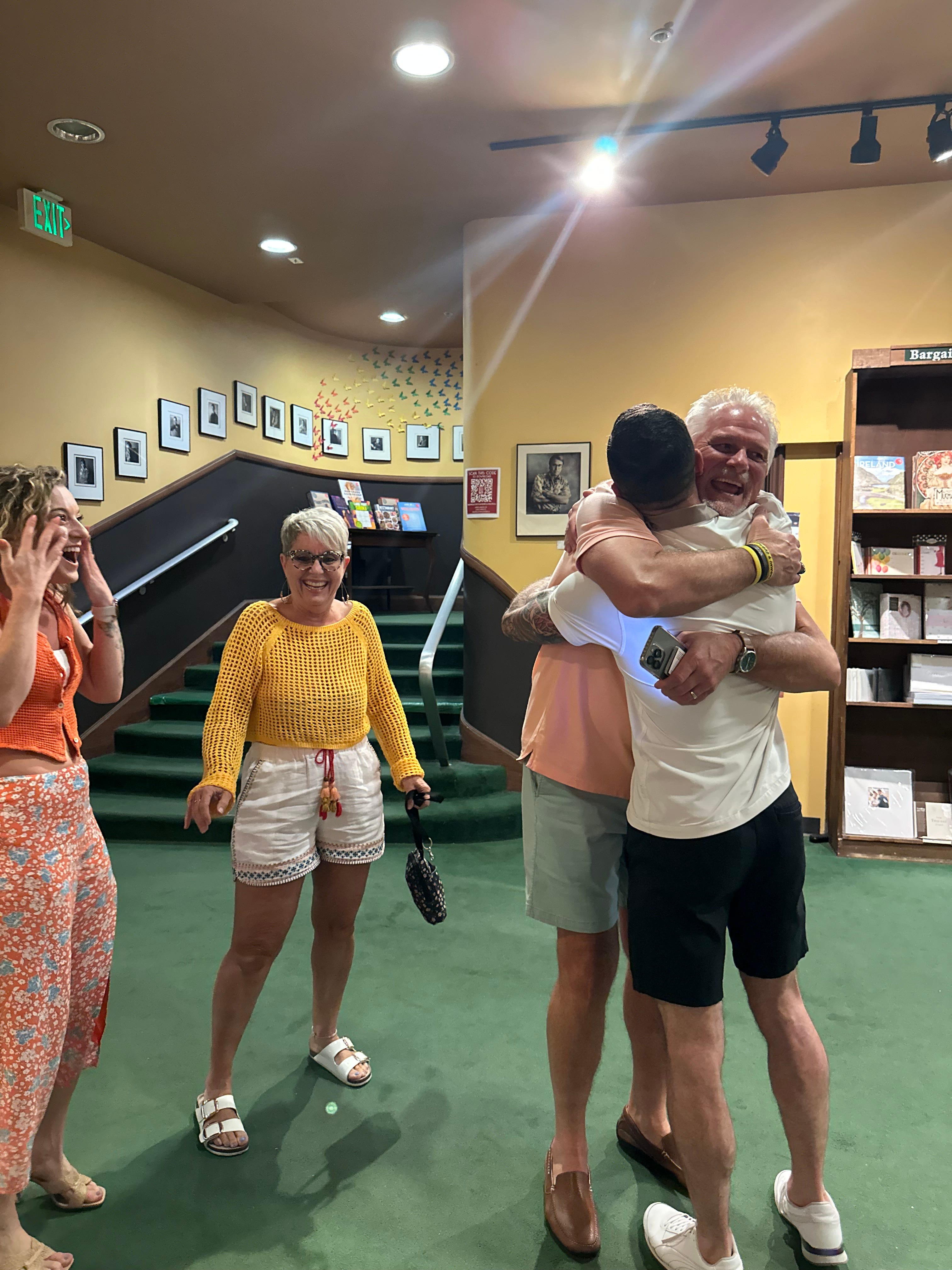 Very gratefully, the answer is yes, my parents still think I’m the bees knees. My dad was the moderator for my book release launch party panel, and they have been in attendance at multiple book tour stops. They even surprised me at my latest stop in Denver at Tattered Cover. Look at my face!